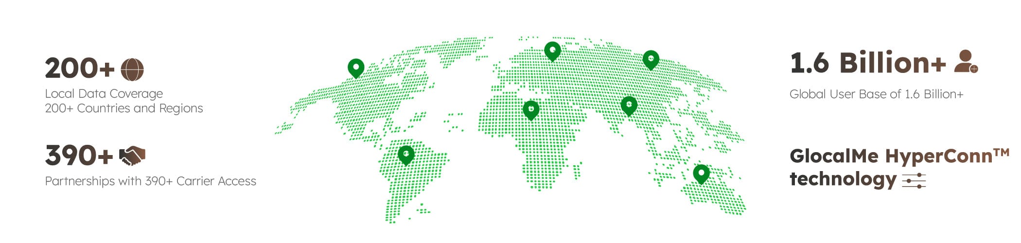 At the heart of GlocalMe's innovation lies a revolutionary Cloud SlM technology that empowers users to efforlessly choose the most optimal network coverage from multi-carriers that speaks quality and affordability no matter where they are in the world.