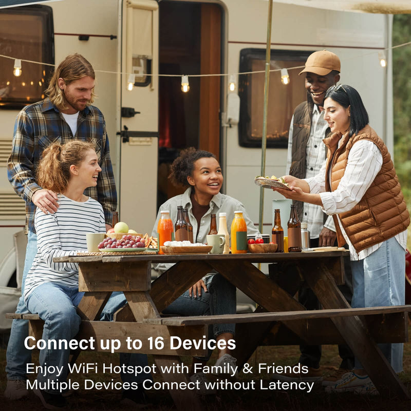 - The 5,400mAh battery provides up to 11 hours usage, connect up to 16 Devices.